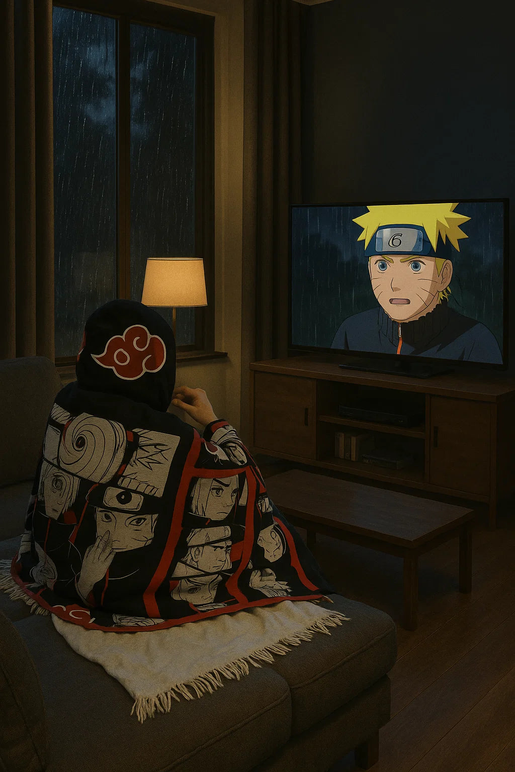 This anime poncho is like a soft blanket with your favorite design. Cozy up at home while watching Netflix or doing homework. Great for cold days or lazy weekends.